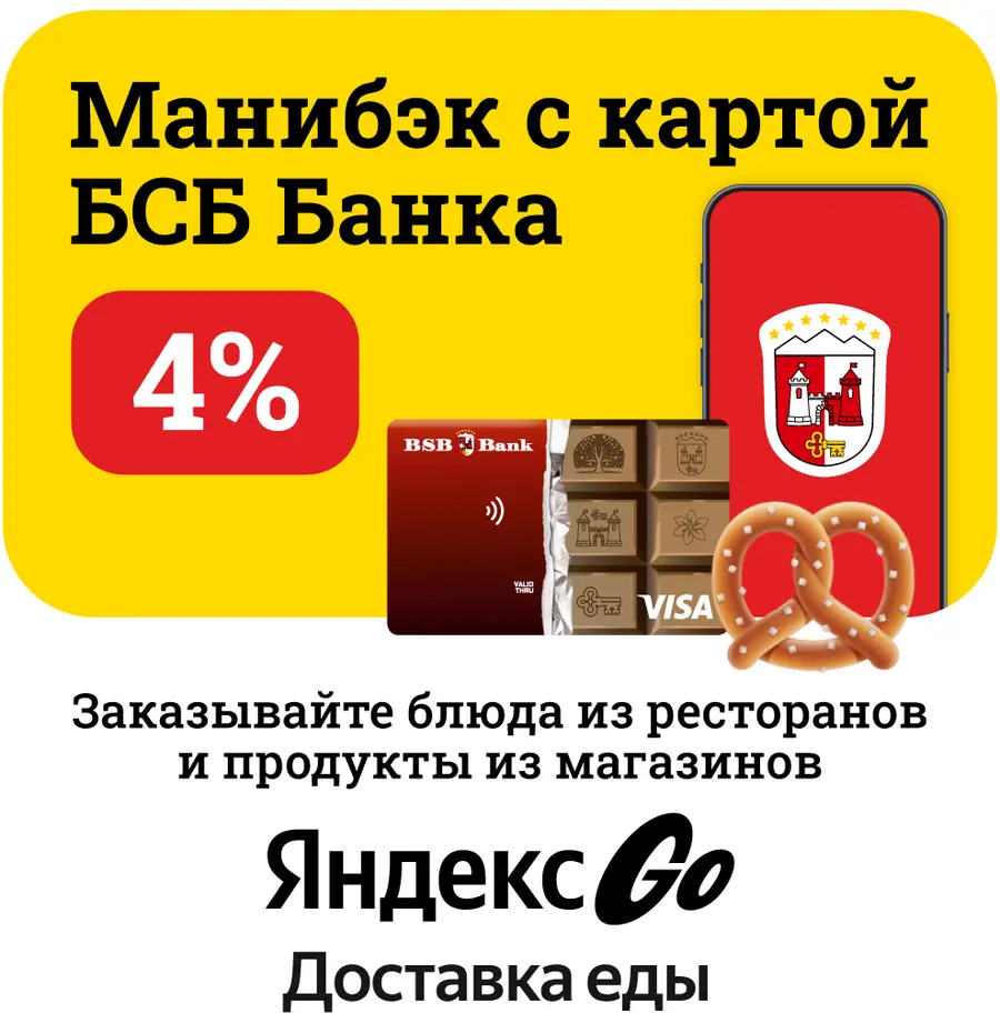 Оплачивайте блюда из ресторанов и продукты из магазинов картами БСБ Банка, внутри популярного сервиса и получайте манибэк 4%.